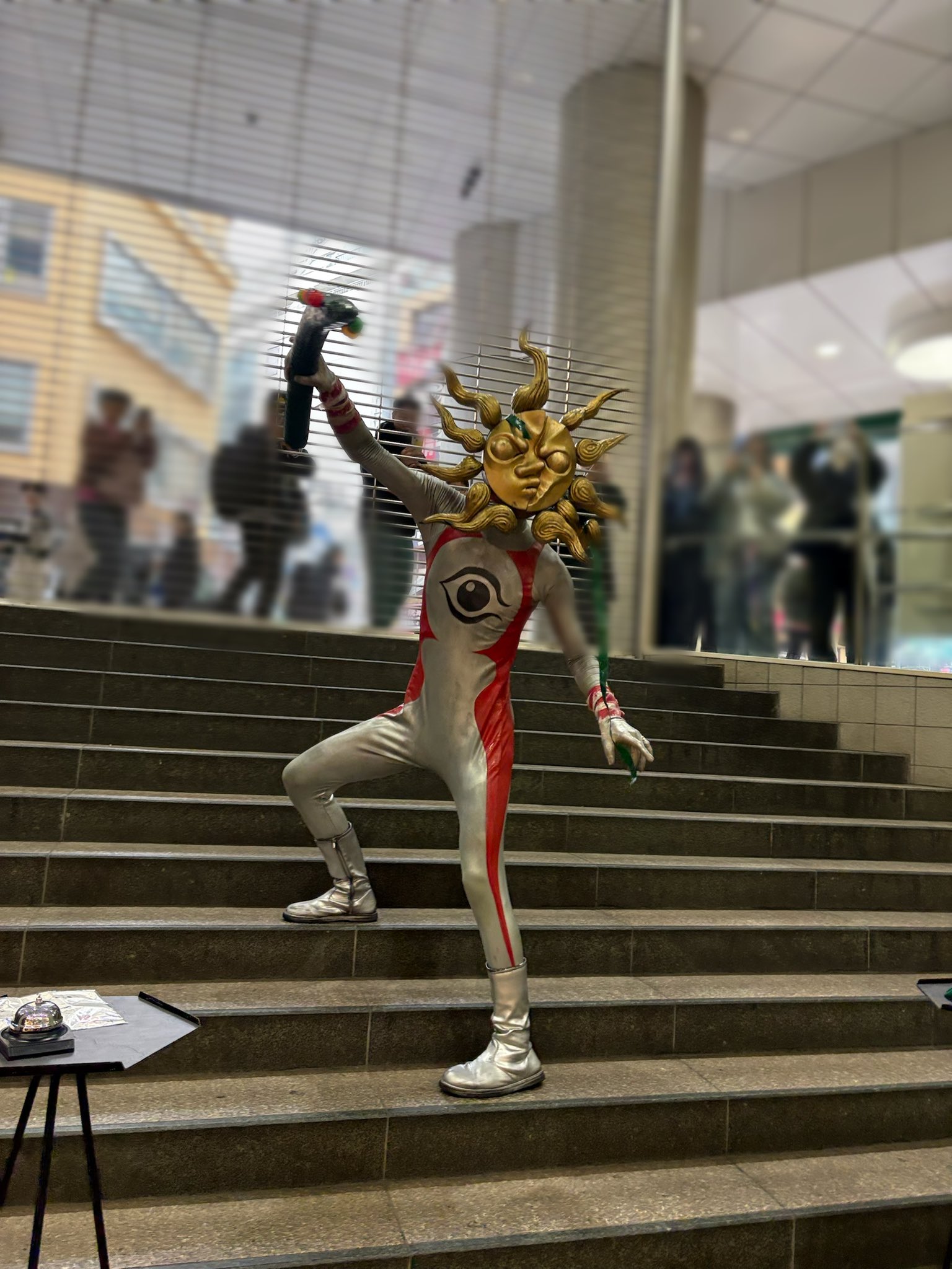 列並んでたらシャンシャン音がするから何かと思ったら、歓喜のツノをタローマンが振り回してた。魔除けの儀式かな?呼び鈴鳴らしまくったり柵の向こうのお客さんを威嚇してるのもでたらめてて素敵でした。