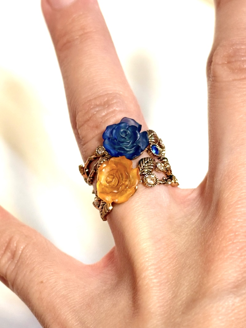 こちらはaxesさんで見かけたミニ薔薇リング。ヒュレカラーあったからつい揃えてしまった。